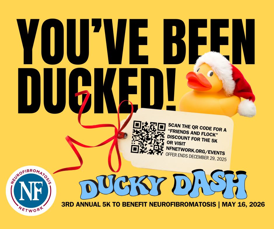 Be a Part of the Fun!We want to have all kinds of fun ducky swag and prizes for our participants. But, we can't do it without you! Your sponsorship and/or in-kind gifts go to The Neurofibromatosis (NF) Network. We are a national leader in the promotion of federally-funded NF research. We bring the voices of the NF community directly to Congress each year to secure desperately needed funds for NF research. In addition, the NF Network produces educational materials, newsletters and meetings for adults and children to help them understand NF. We also combat social isolation by providing a hotline for NF questions, community events like this and spreading awareness. We are a non-profit 501(c)(3) organization, so your contributions are tax deductible and also what keep us around for when the next NF family calls.