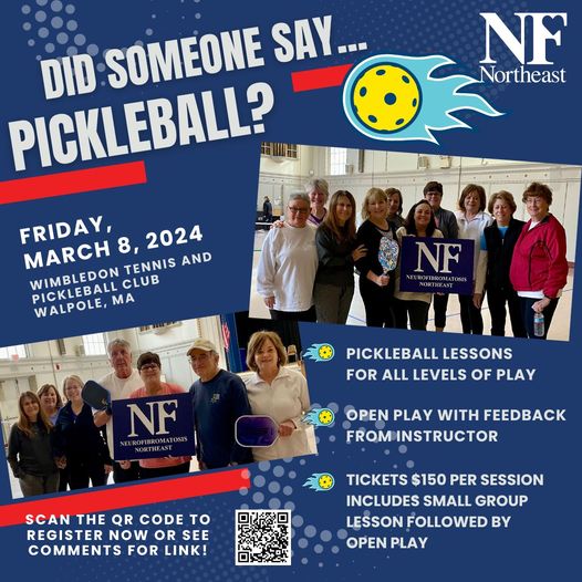 Join us on Friday, March 8th at the Wimbledon Tennis and Pickleball Club located on 20 County Road in Walpole for a session of pickleball to benefit all those affected by neurofibromatosis.